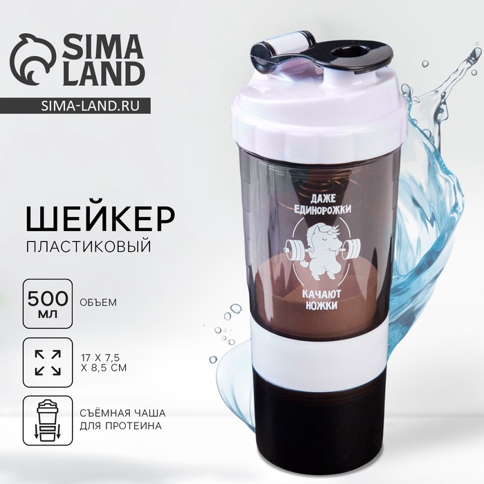 Шейкер с чашей под протеин «Даже единорожки качают ножки», 500 мл