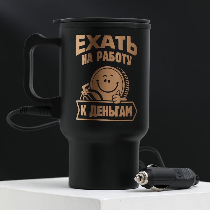 Термокружка в прикуриватель «Ехать на работу-к деньгам», 450 мл, сохраняет тепло 3 ч
