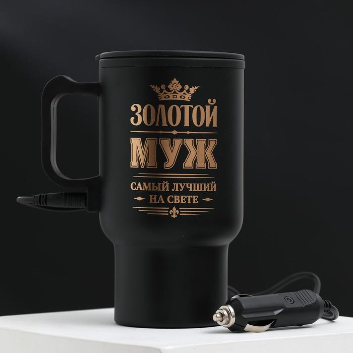 Термокружка, 450 мл, Автомобильная «Золотой муж», сохраняет тепло 3 ч, с подогревом от прикуривателя