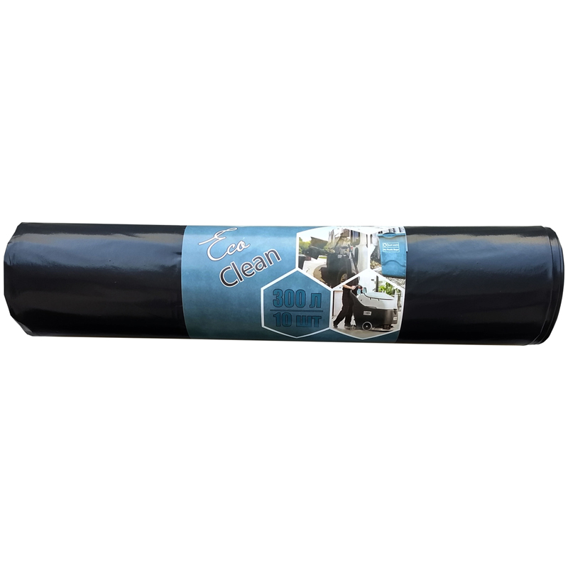 Мешки для мусора 300л КБ "Ecoclean" ПВД, 110*130см, 45мкм, 10шт., черные, в рулоне