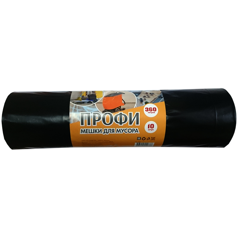 Мешки для мусора 360л КБ "Профи" ПВД, 110*140см, 65мкм, 10шт., черные, в рулоне