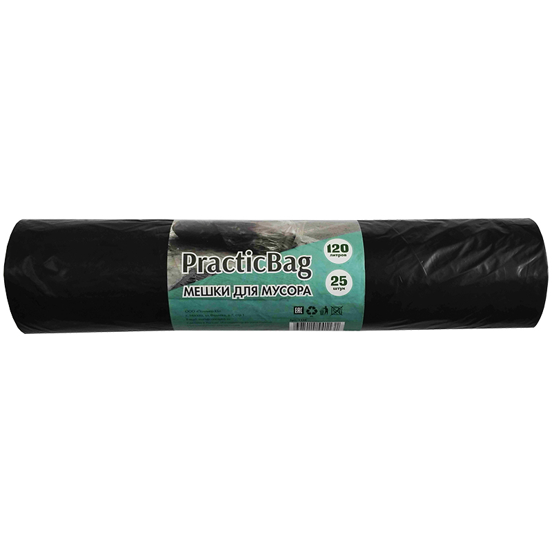 Мешки для мусора 120л КБ "PracticBag" ПВД, 70*106см, 35мкм, 25шт., черные, в рулоне