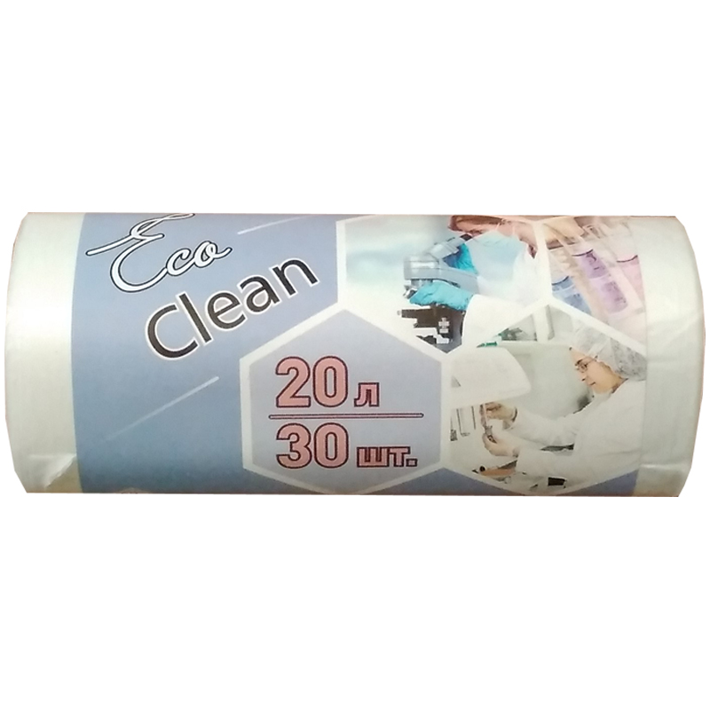 Мешки для мусора 20л КБ "Ecoclean" ПНД, 22*50см, 6мкм, 30шт., белые, в рулоне