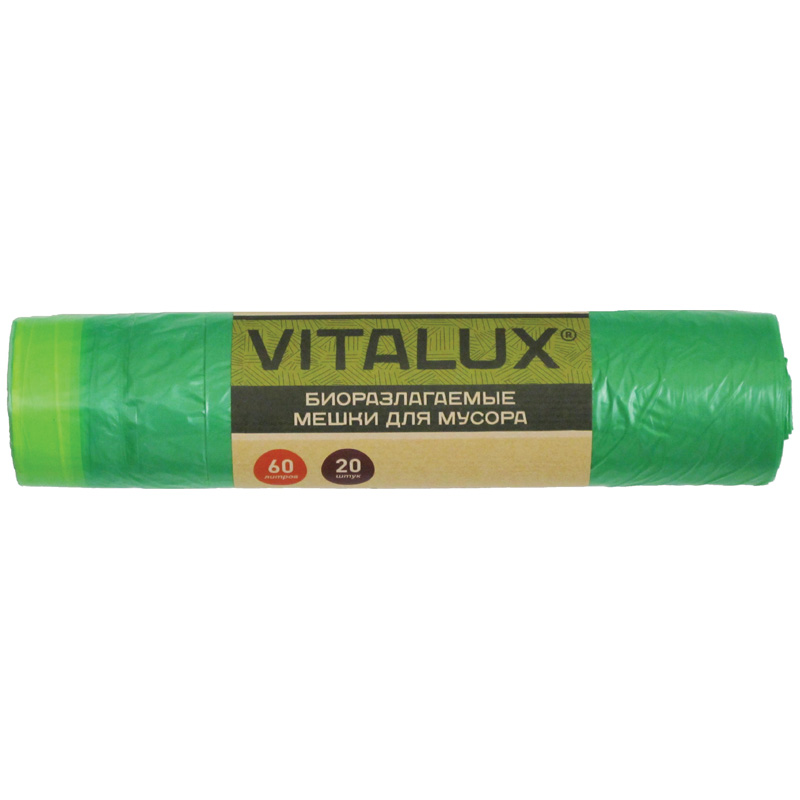 Мешки для мусора 60л КБ "VitaLux-био" биоразлагаемые, ПНД, 58*68см, 10мкм, 20шт., зеленые, в рулоне, с завязками