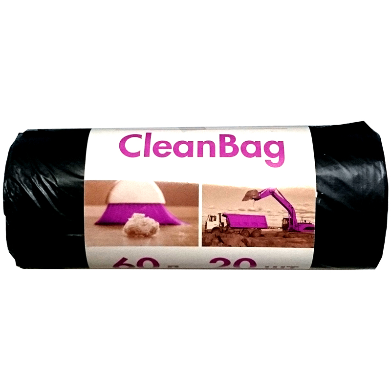 Мешки для мусора 60л КБ "CleanBag" ПНД, 58*66см, 17мкм, 20шт., черные, в рулоне