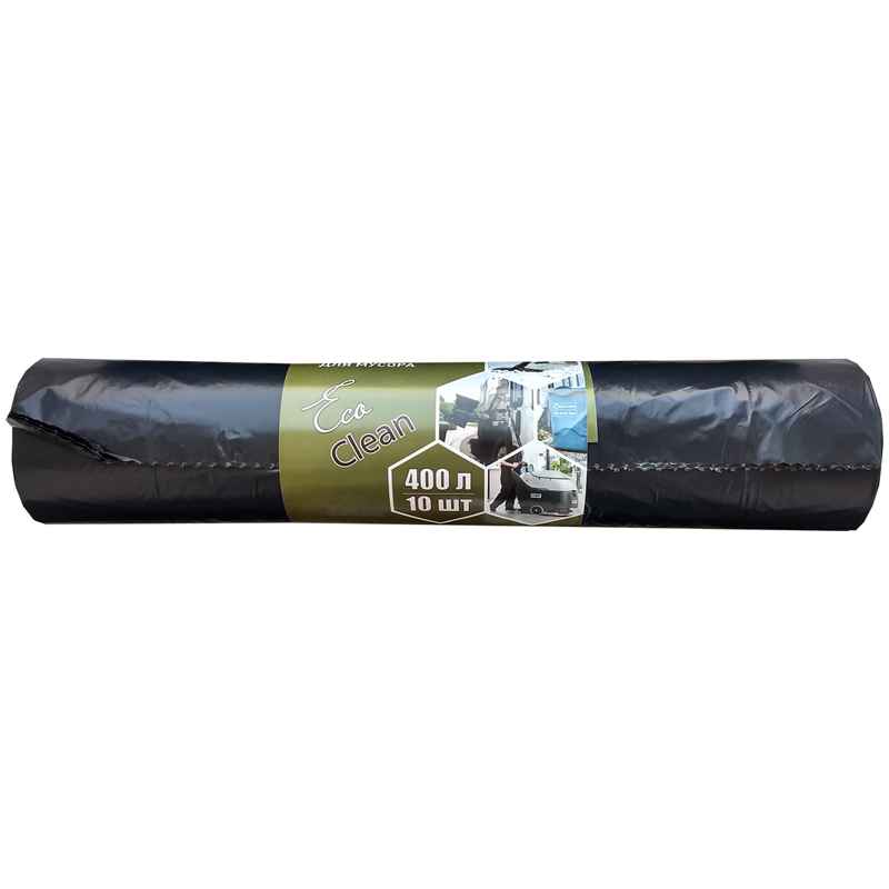 Мешки для мусора 400л КБ "Ecoclean" ПВД, 120*150см, 45мкм, 10шт., черные, в рулоне