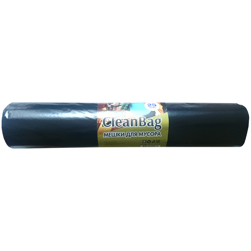 Мешки для мусора 200л КБ "CleanBag" ПВД, 90*130см, 50мкм, 25шт., черные, в рулоне