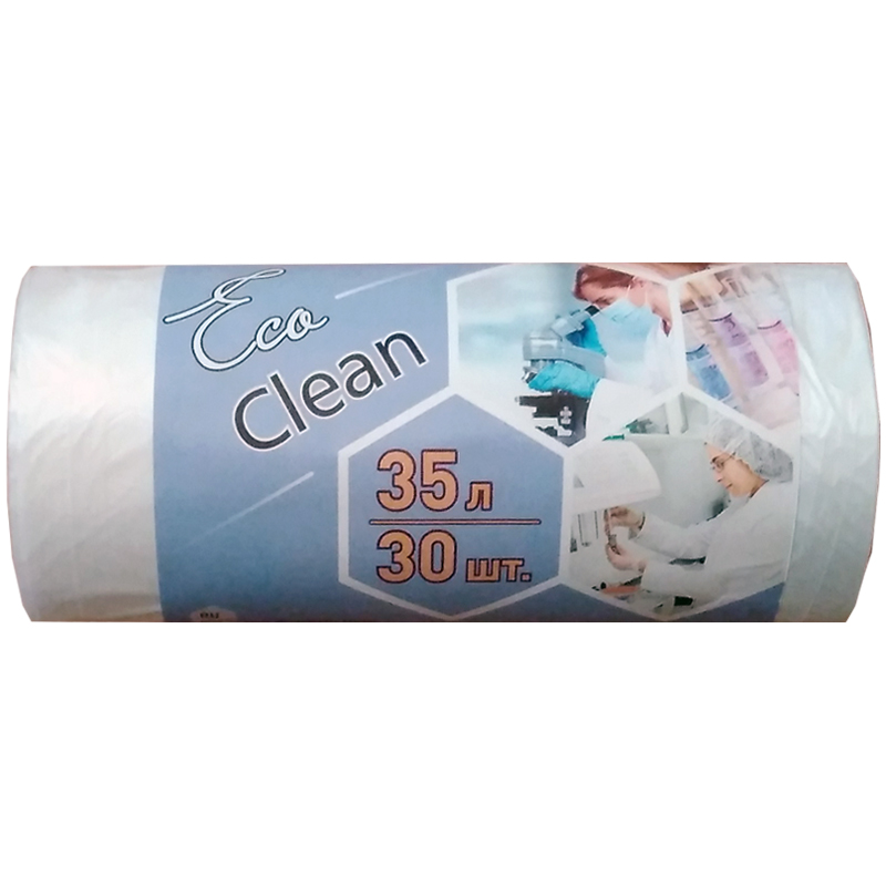 Мешки для мусора 35л КБ "Ecoclean" ПНД, 48*55см, 6мкм, 30шт., белые, в рулоне
