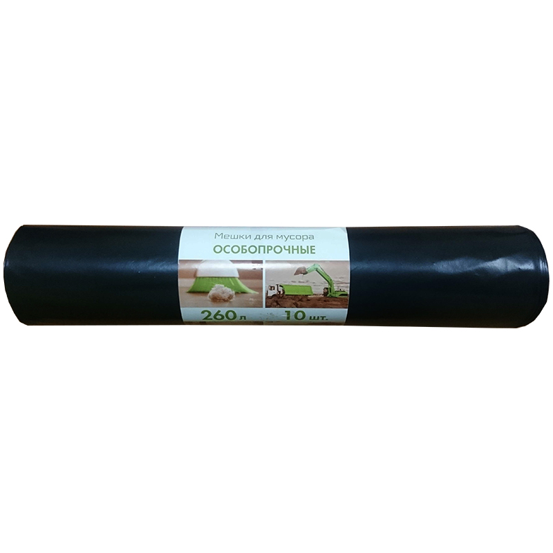 Мешки для мусора 260л КБ ПВД, 90*140см, 100мкм, 10шт., черные, в рулоне, особопрочные