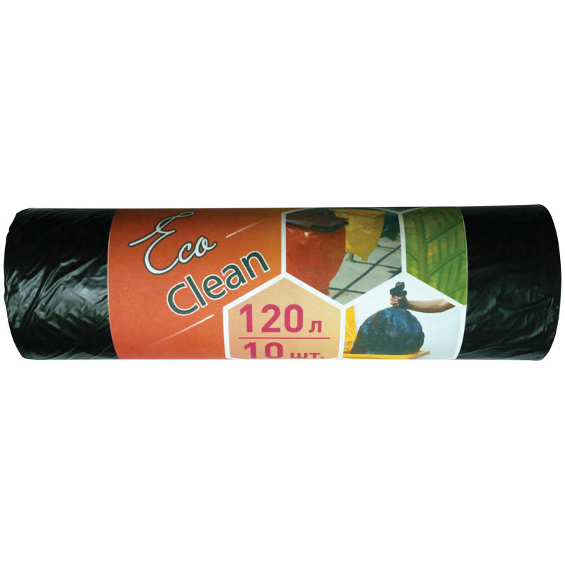 Мешки для мусора 120л КБ "Ecoclean" ПНД, 67*102см, 12мкм, 10шт.,черные, в рулоне