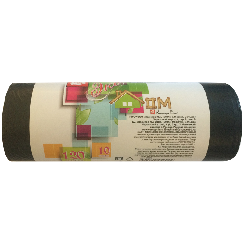Мешки для мусора 120л КБ "Экодом" ПВД, 67*100см, 20мкм, 10шт., черные, в рулоне