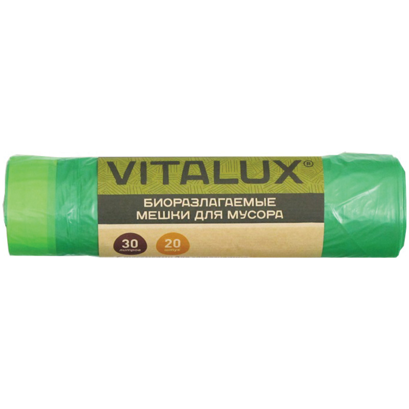 Мешки для мусора 30л КБ "VitaLux-био" биоразлагаемые, ПНД, 48*58см, 12мкм, 20шт., зеленые, в рулоне, с завязками