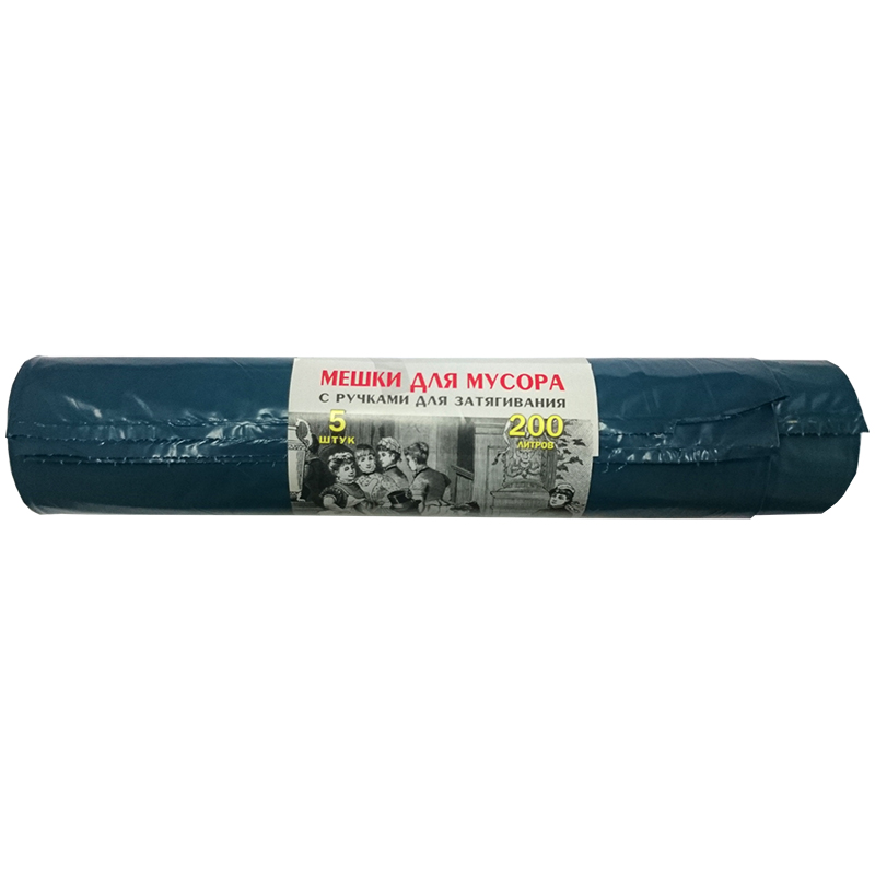 Мешки для мусора 200л КБ "Vitalux" ПВД, 85*110см, 40мкм, 5шт., синие, в рулоне, с завязками
