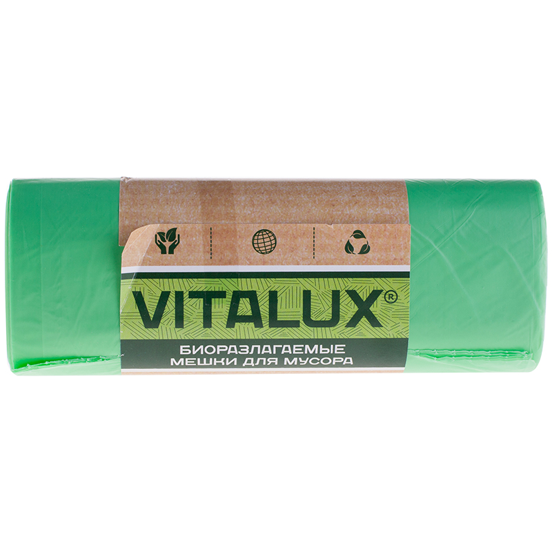 Мешки для мусора 120л КБ "VitaLux-био" биоразлагаемые, ПНД, 70*105см, 15мкм, 10шт.,зеленые, в рулоне