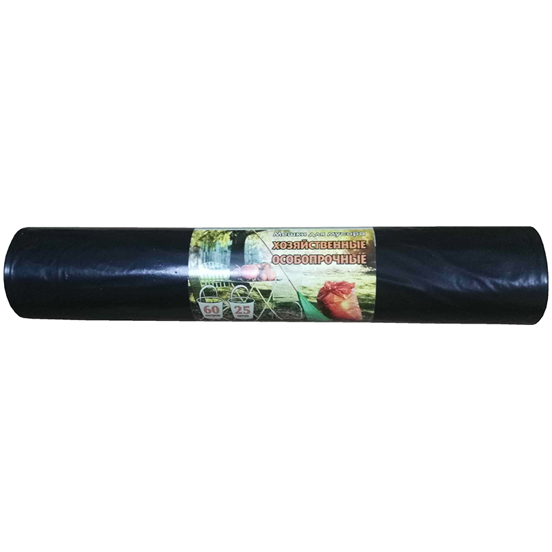 Мешки для мусора 60л КБ "Хозяйственные" ПВД, 60*70см, 25мкм, 25шт.,черные, в рулоне