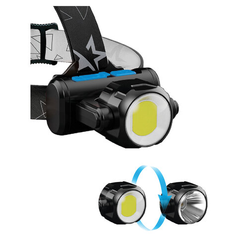 Фонарь налобный аккумуляторный КОСМОС, 3 Вт, LED + 3 Вт, СОВ, Li-ion, заряд от USB, KocH3WDLith