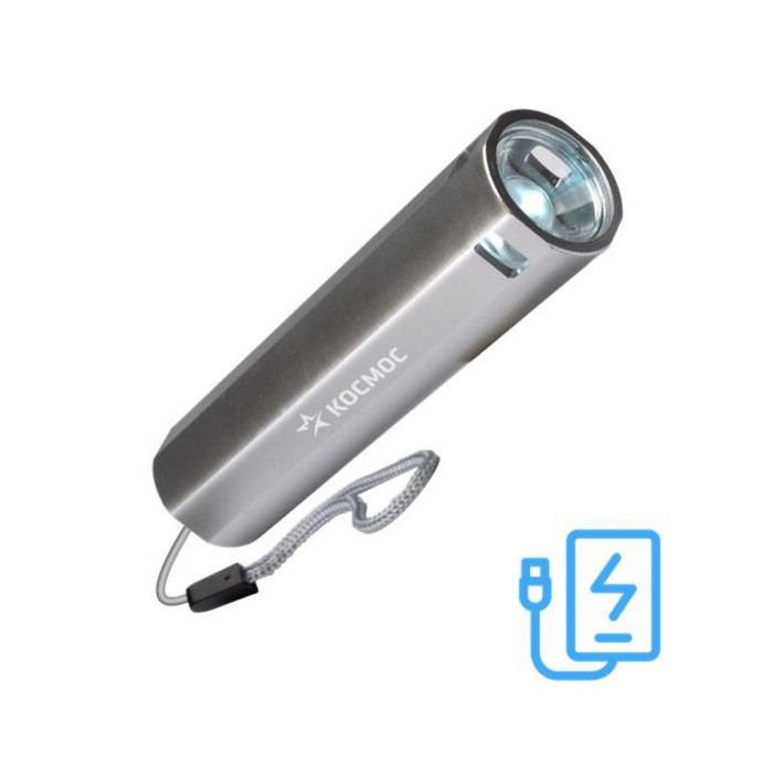 Фонарь аккумуляторный, ручной LED 1Вт линза АКБ, Li-ion 18650 1.2А.ч, Power-bank USB-шнур ABS-пластик