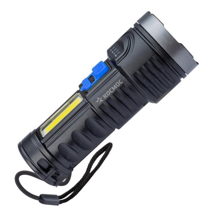 Фонарь аккумуляторный, ручной LED 3Вт + COB 3Вт АКБ, Li-ion 18650 1.2А.ч, индикатор USB-шнур ABS-пластик