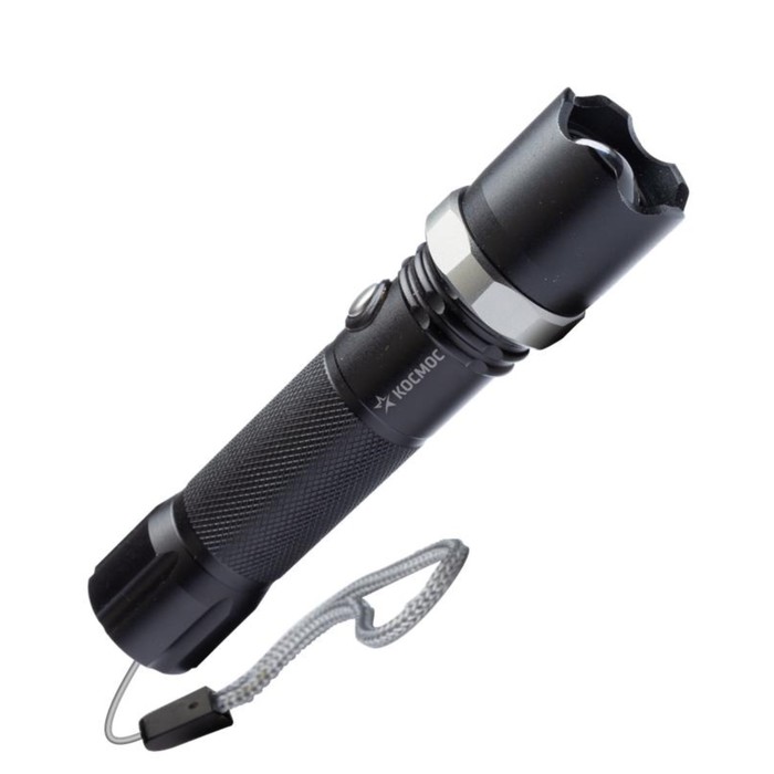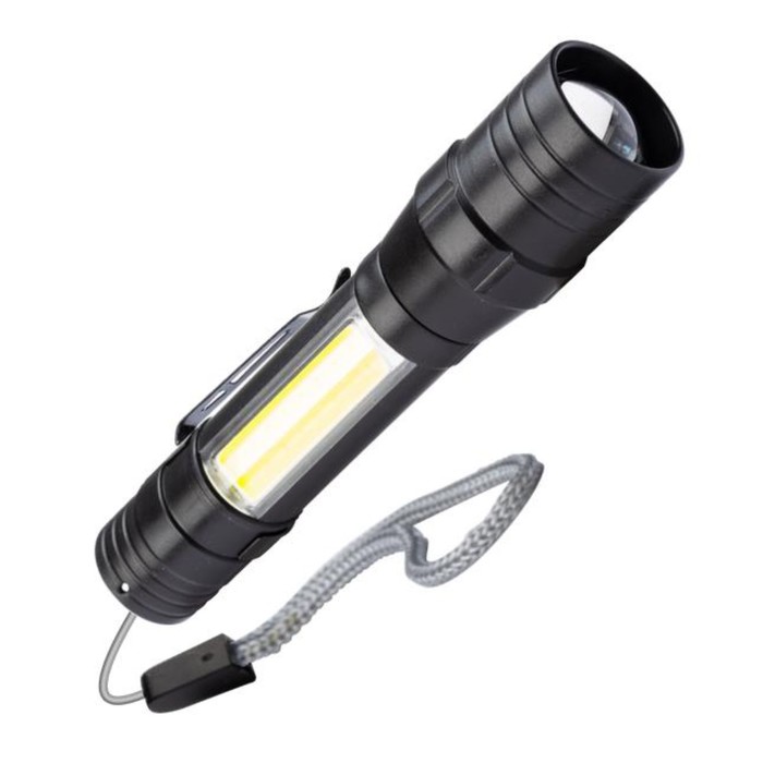 Фонарь аккумуляторный, ручной LED 1Вт + COB 5Вт линза зум АКБ, Li-ion 18650 1А.ч, USB-шнур ABS-пластик