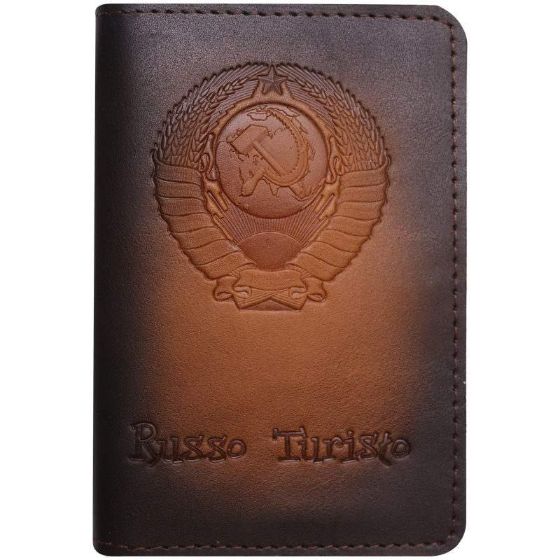 Обложка для паспорта Кожевенная мануфактура, "Руссо Туристо", нат. кожа, коричневая, в деревянной упаковке