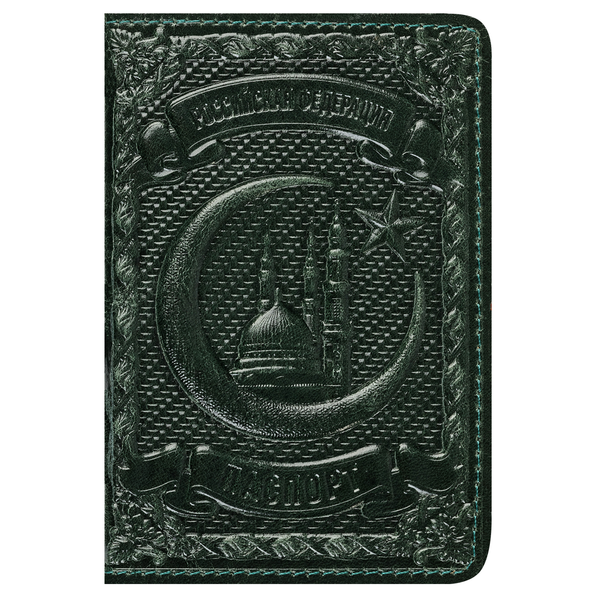 Обложка для паспорта Кожевенная мануфактура, нат. кожа, "Звезда и Полумесяц", зеленый
