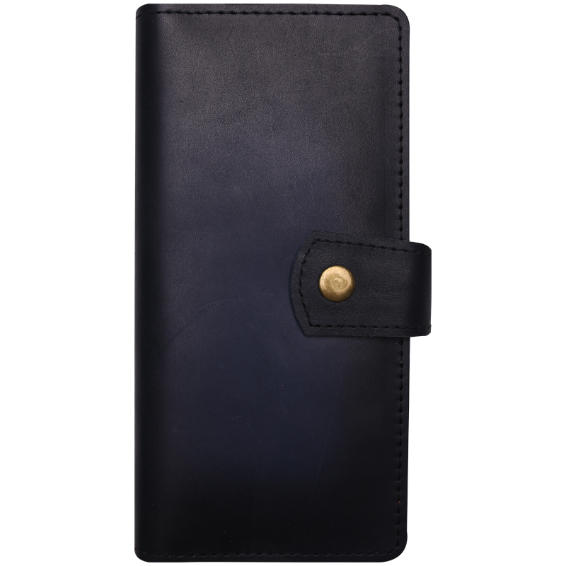 Портмоне с хлястиком Кожевенная мануфактура, нат. кожа, синий, в деревянной упаковке