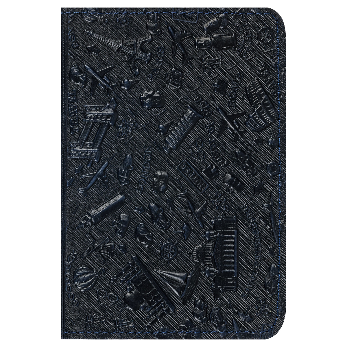 Обложка для паспорта Кожевенная мануфактура, нат. кожа, "Путешествия", темно-синяя