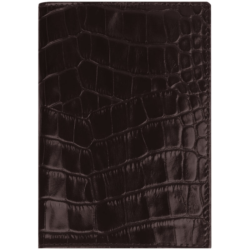 Обложка для паспорта Кожевенная мануфактура с кож. карманом, темно-коричневый крокодил, нат. кожа