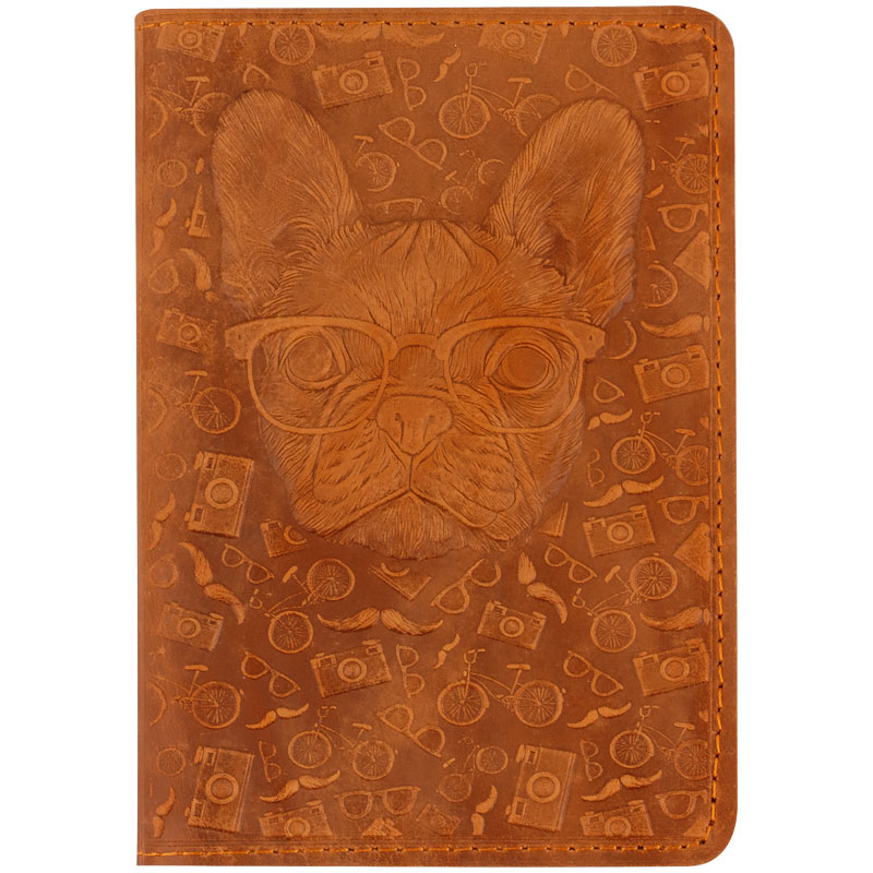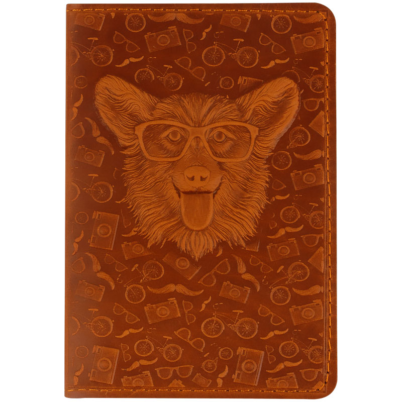 Обложка для паспорта Кожевенная мануфактура, нат. кожа, "Пес в очках", коричневый