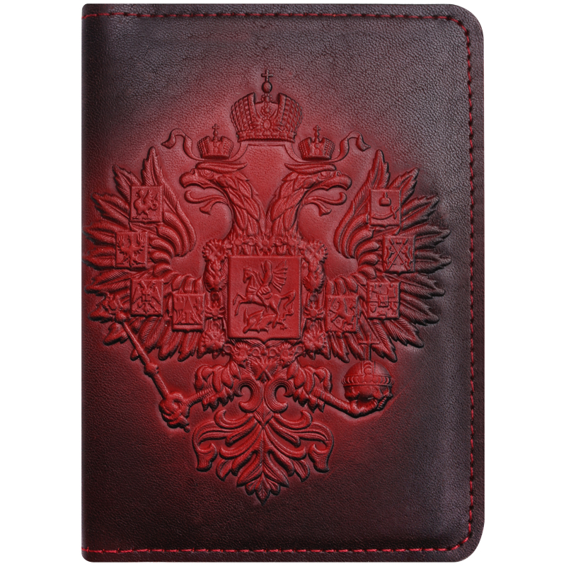 Обложка для паспорта Кожевенная мануфактура "Орел Российской Империи", красный, в деревянной упаковке