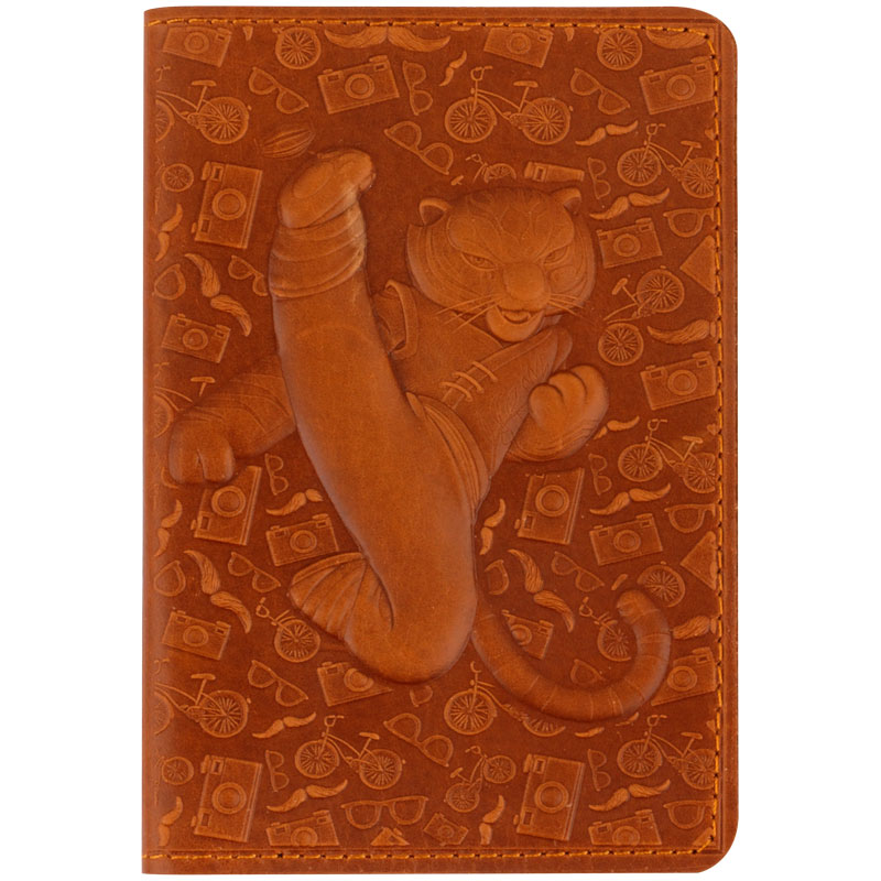 Обложка для паспорта Кожевенная мануфактура, нат. кожа, "Тигр 2", коричневый