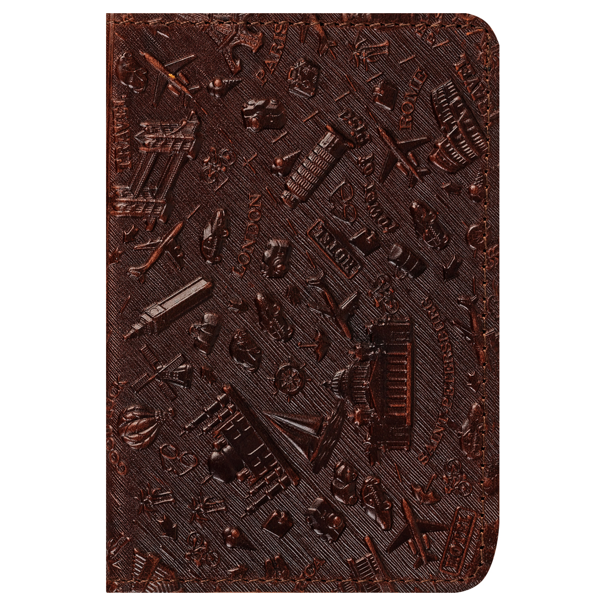 Обложка для паспорта Кожевенная мануфактура, нат. кожа, "Путешествия", коричневая