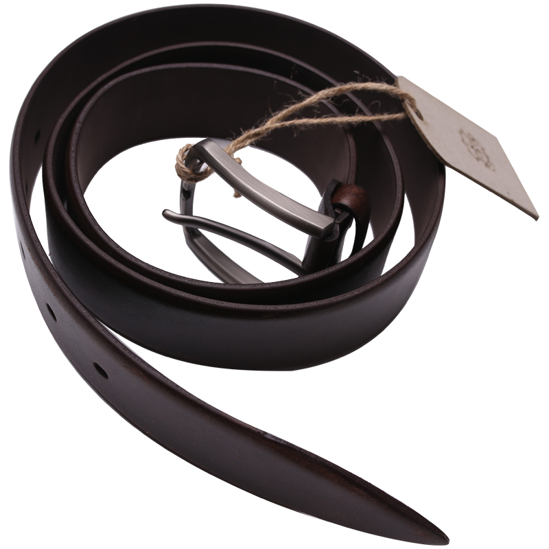 Ремень Кожевенная мануфактура, нат. кожа, коричневый, подарочная упаковка дерево на магнитах