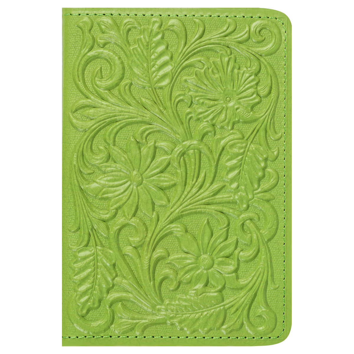 Обложка для паспорта Кожевенная мануфактура, нат. кожа, "Цветы", лайм