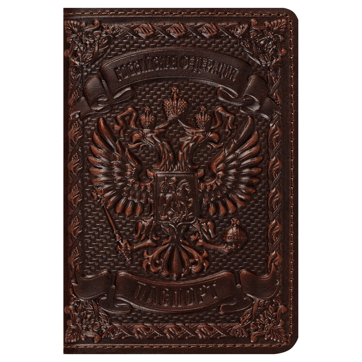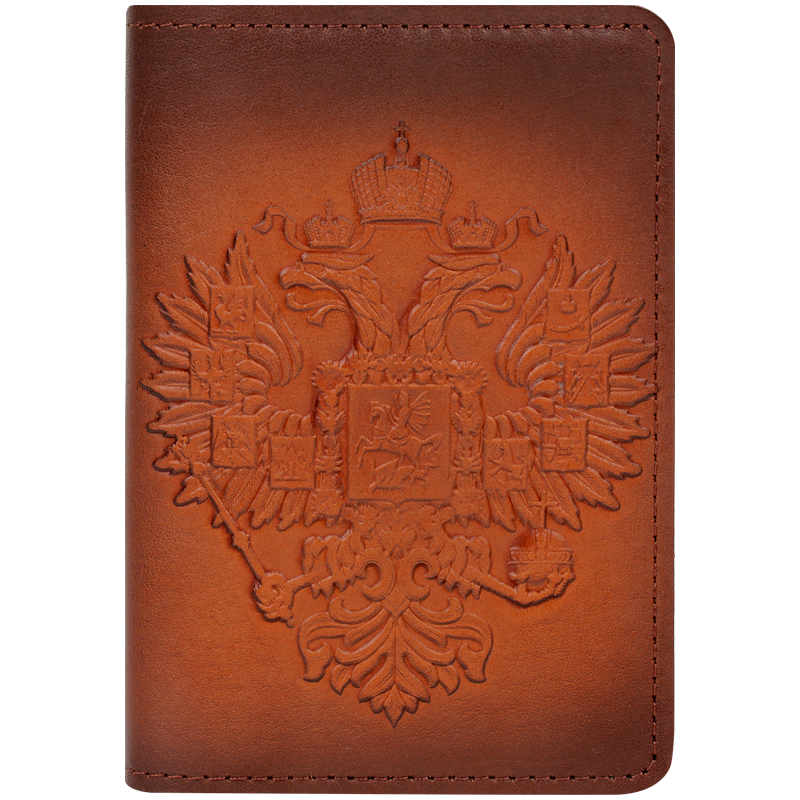 Обложка для паспорта Кожевенная мануфактура "Орел Российской Империи", светло-коричневый, в деревянной упаковке