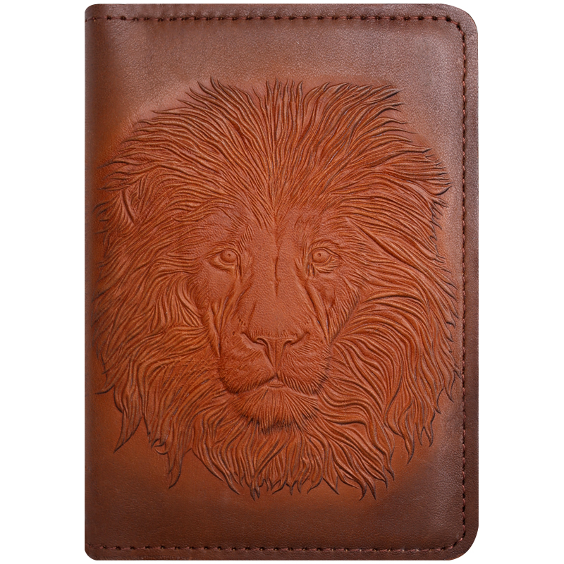 Обложка для паспорта Кожевенная мануфактура "Лев", светло-коричневый, в деревянной упаковке