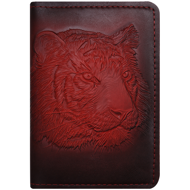 Обложка для паспорта Кожевенная мануфактура "Тигр", красный, в деревянной упаковке