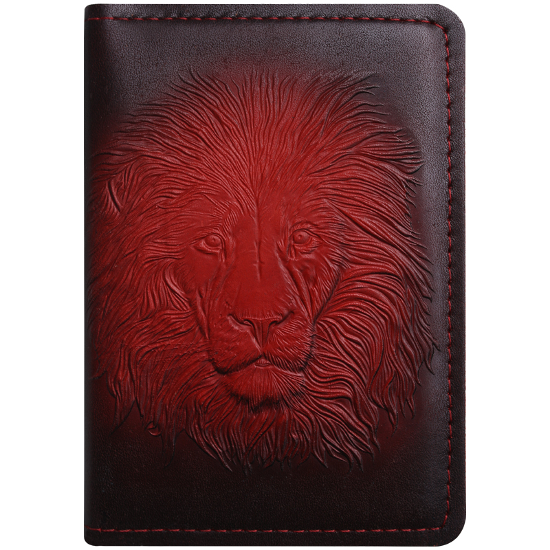 Обложка для паспорта Кожевенная мануфактура "Лев", красный, в деревянной упаковке