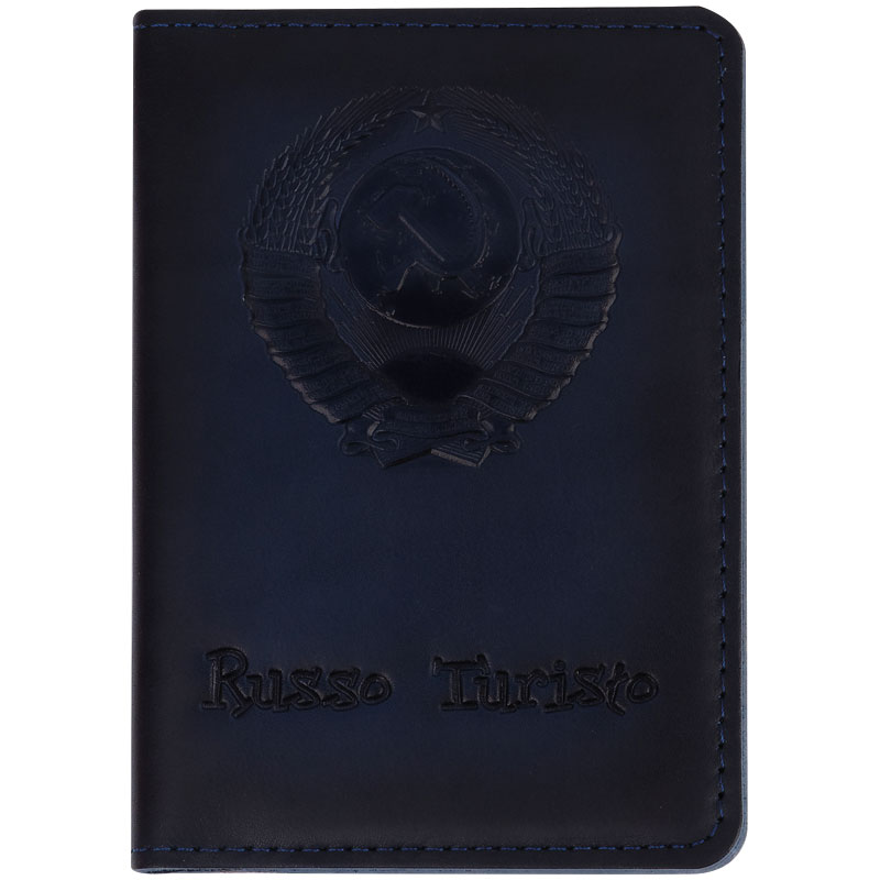 Обложка для паспорта Кожевенная мануфактура, "Руссо Туристо", нат. кожа, синяя, в деревянной упаковке