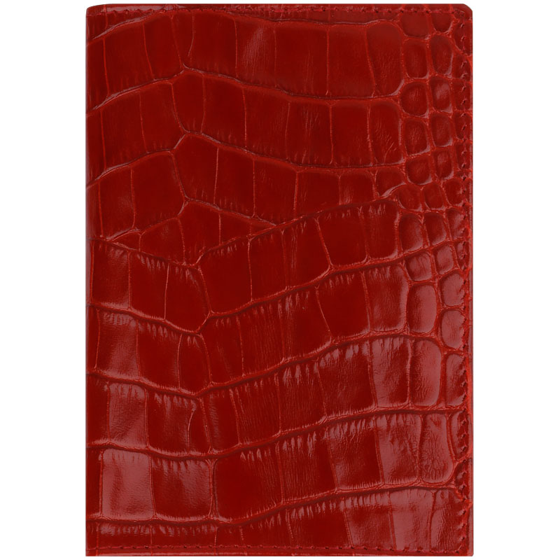 Обложка для паспорта Кожевенная мануфактура с кож. карманом, красный крокодил, нат. кожа