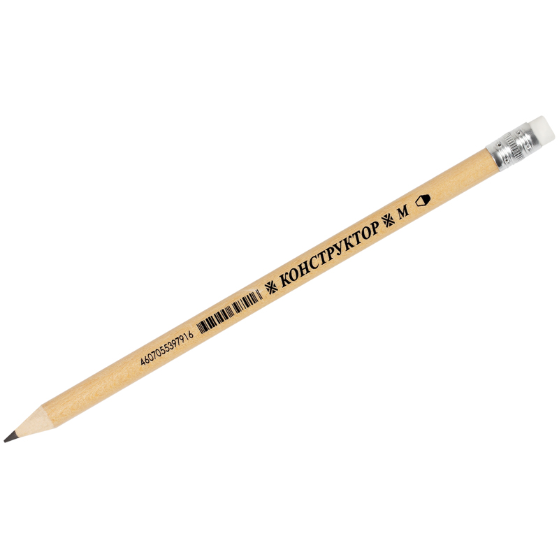 Карандаш ч/г Красин "Конструктор" М (B) круглый, заточен., с ластиком