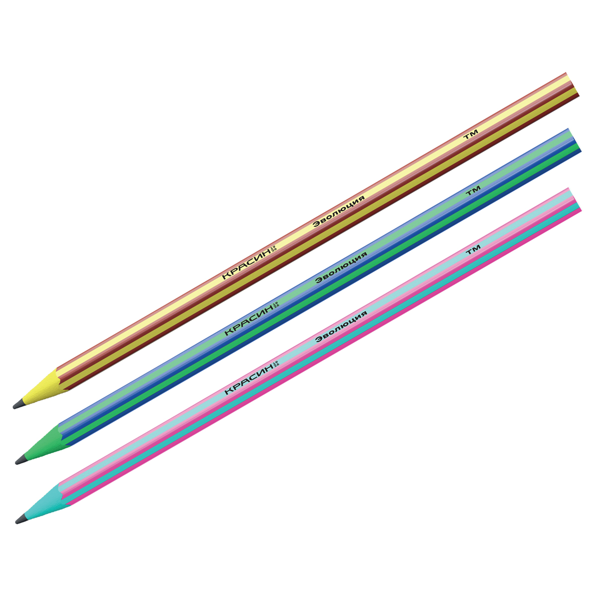 Карандаш ч/г Красин "Эволюция" ТМ (HB), с полосами, заточен., пластиковый