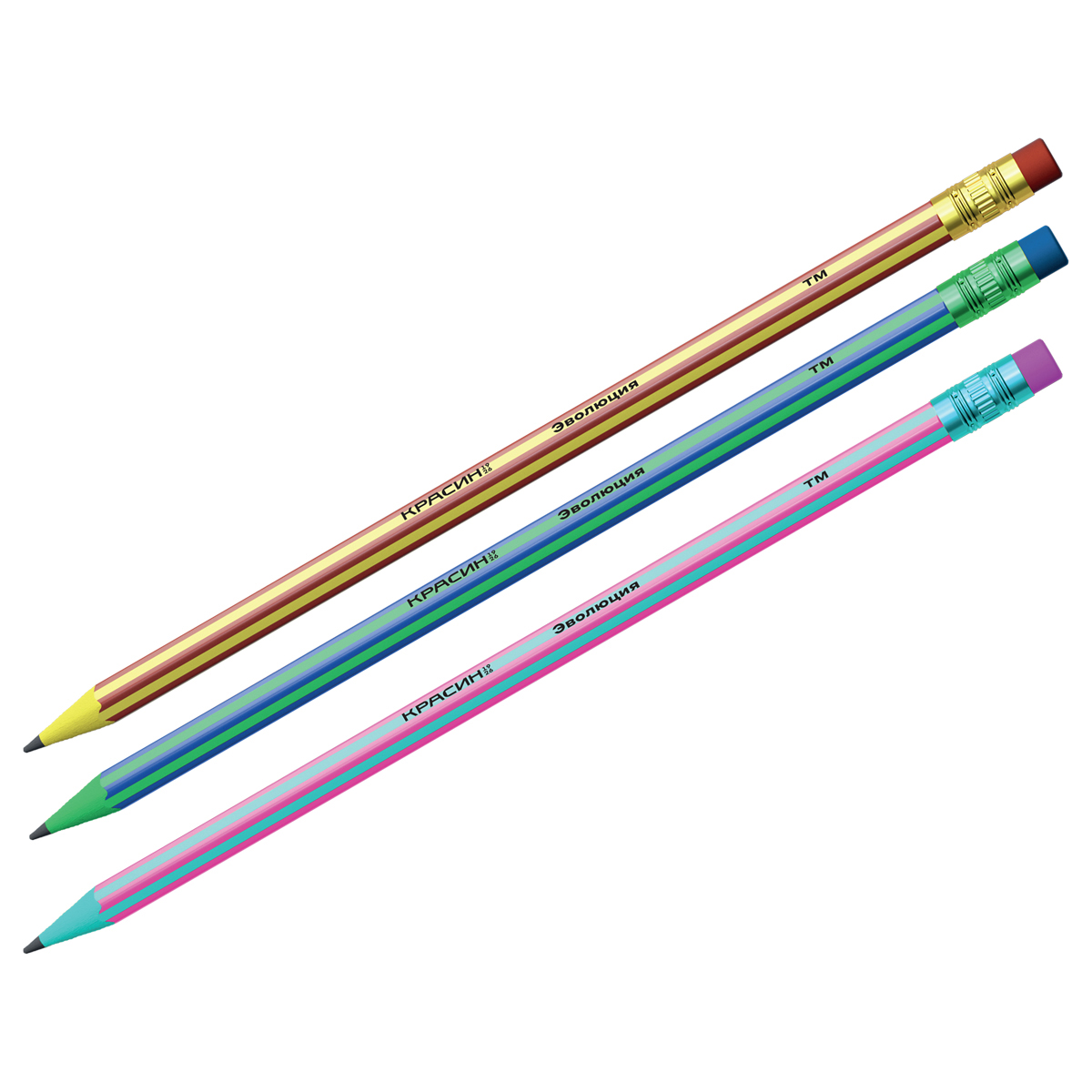 Карандаш ч/г Красин "Эволюция" ТМ (HB), с полосами, с ластиком, заточен., пластиковый