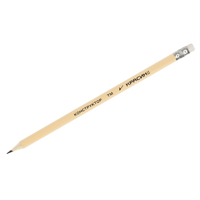 Карандаш чёрнографитный Красин "Конструктор" HB шестигранный, заточенный, с ластиком