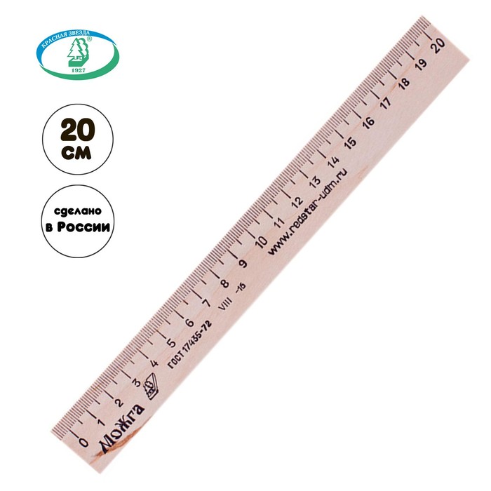 Линейка деревянная 20 см, ЛП-200 "Красная звезда" Можга, С05 (штрихкодированная)
