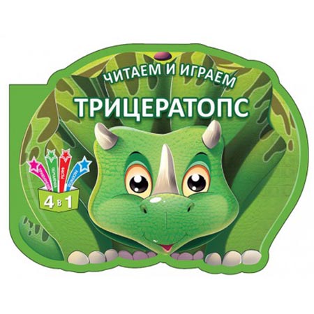 Книжка-раскраска " Кредо " 280*216мм 24стр вырубка Читаем и Играем. Трицератопс, обложка - ламинированный картон с УФ-лаком
