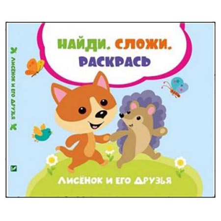 Книжка-пазл-раскраска " Кредо " 107*115мм 10стр Лисенок и его друзья, обложка - ламинированный картон, 7БЦ
