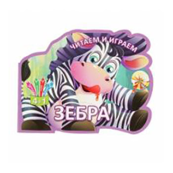 Книжка-раскраска " Кредо " 280*216мм 24стр вырубка Читаем и Играем. Зебра, обложка - ламинированный картон с УФ-лаком