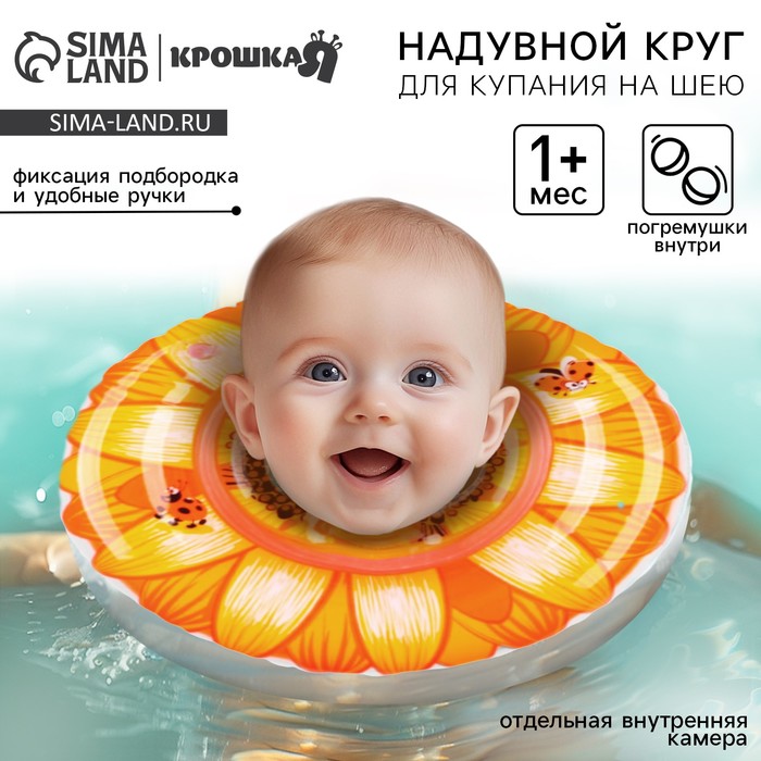 Круг для плавания новорожденных на шею «Подсолнух», надувной, с ручками, цвет оранжевый, Крошка Я