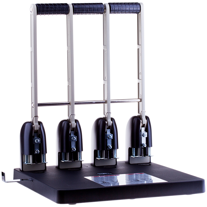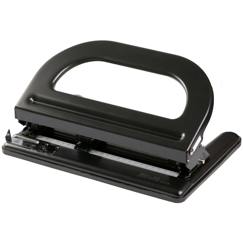 УЦЕНКА - Дырокол мощный на четыре отверстия 150 л, черный, с линейкой